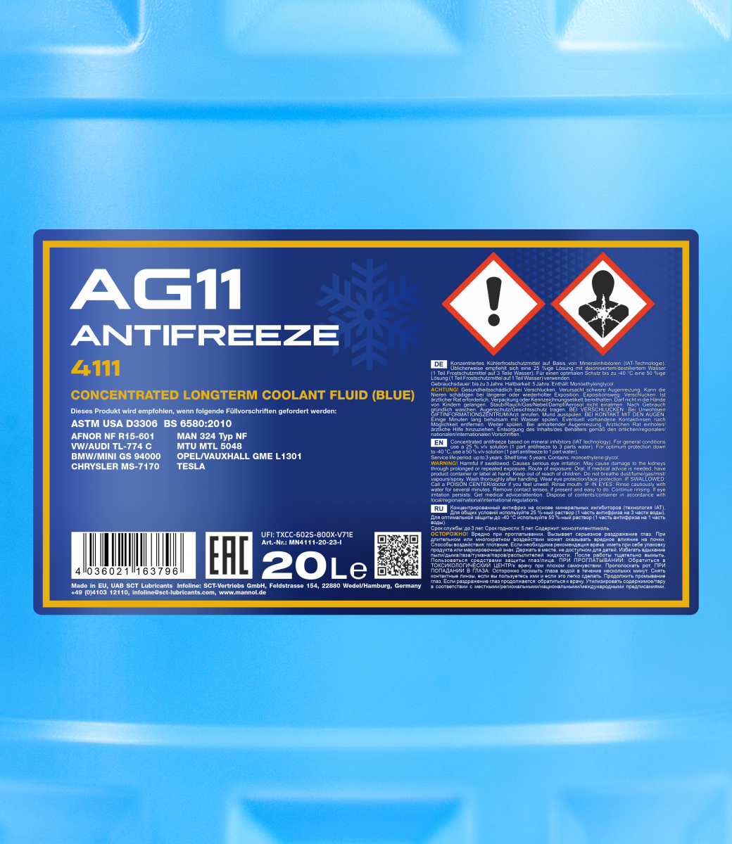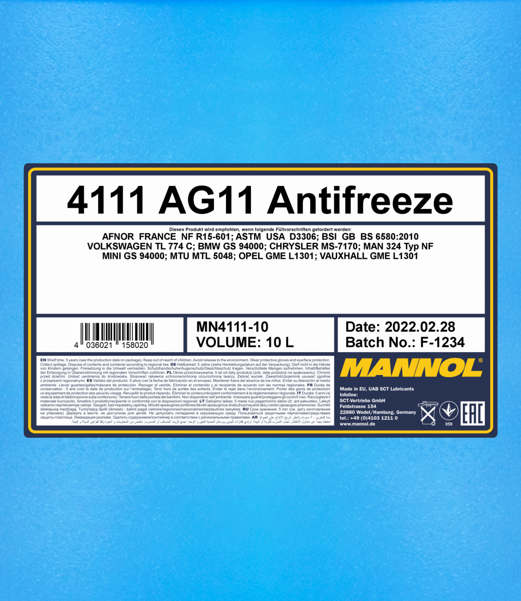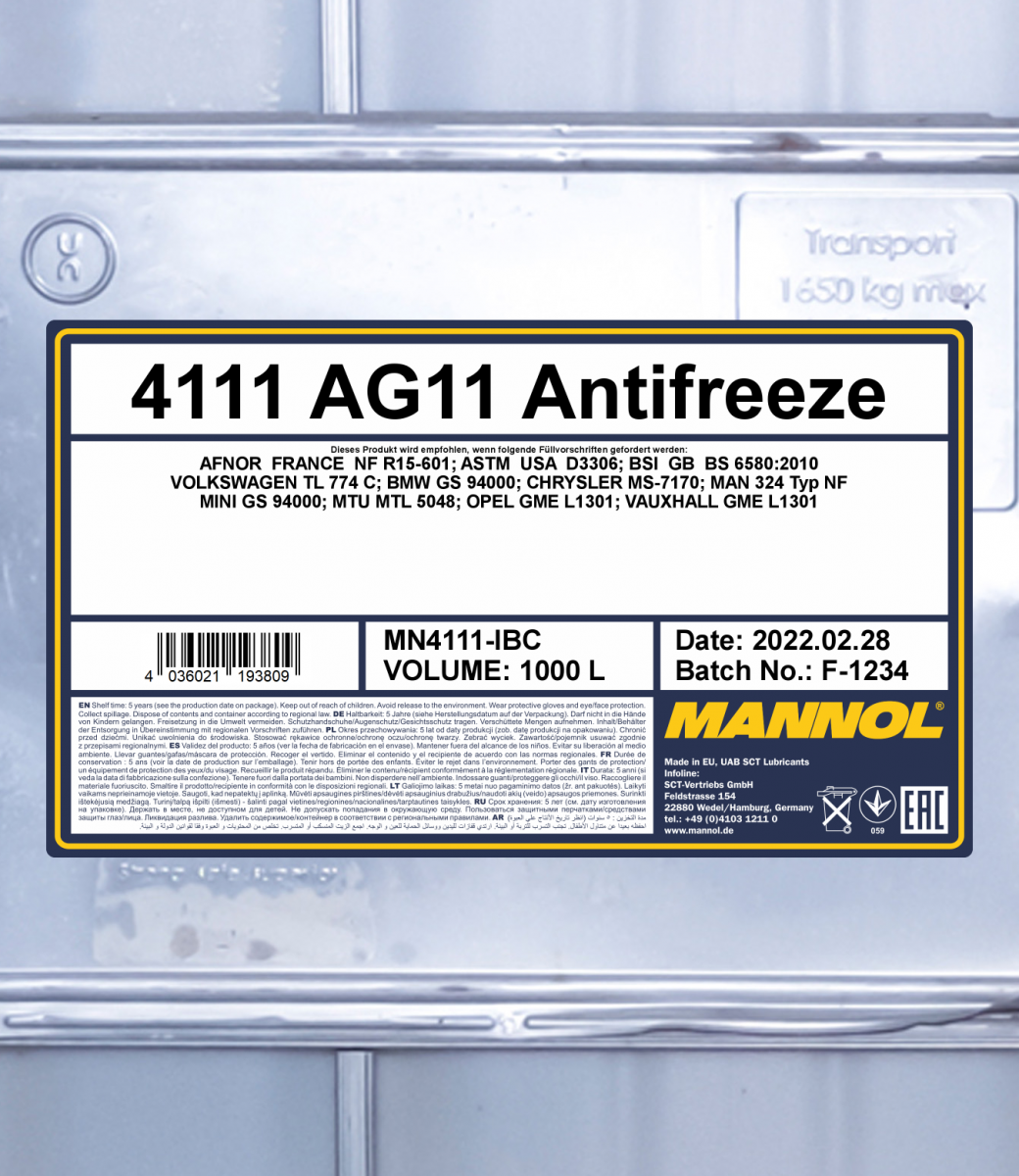 Concentrated antifreeze based on mineral inhibitors – IAT (Inorganic Acid Technology). Antifreeze intended for a year-round use in any modern cooling system for which the use of ethylene-glycol-based antifreeze is recommended.