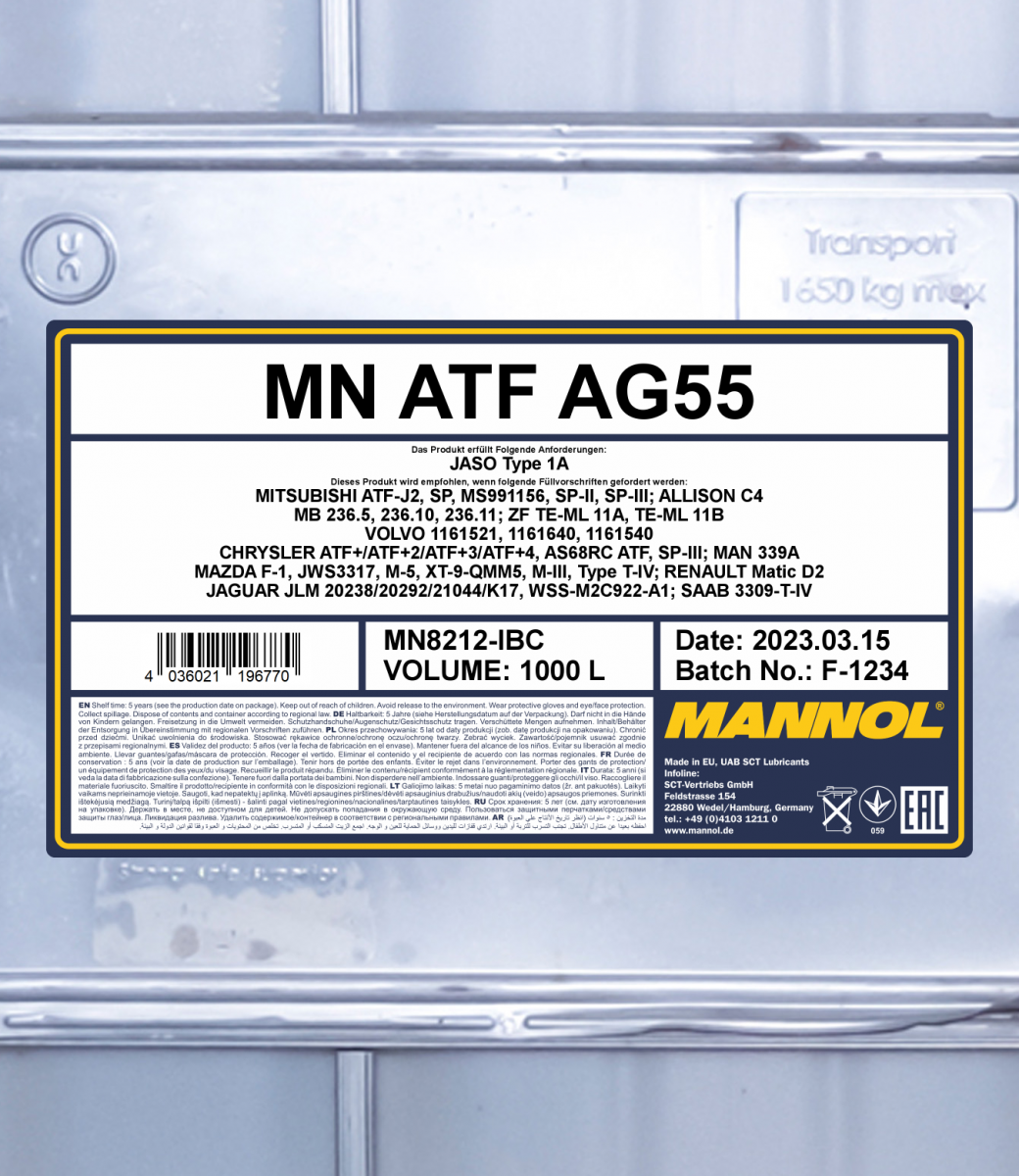 A special all-season synthetic transmission fluid (ATF) for new-generation 6-speed automatic gearboxes of the ZF Group. It ensures a flawless operation of an automatic gearbox, guarantees minimal wear, a lasting service life of transmissions and fuel economy even under extreme loads. It was developed taking into account special requirements G 055 005 set by the Group VW.