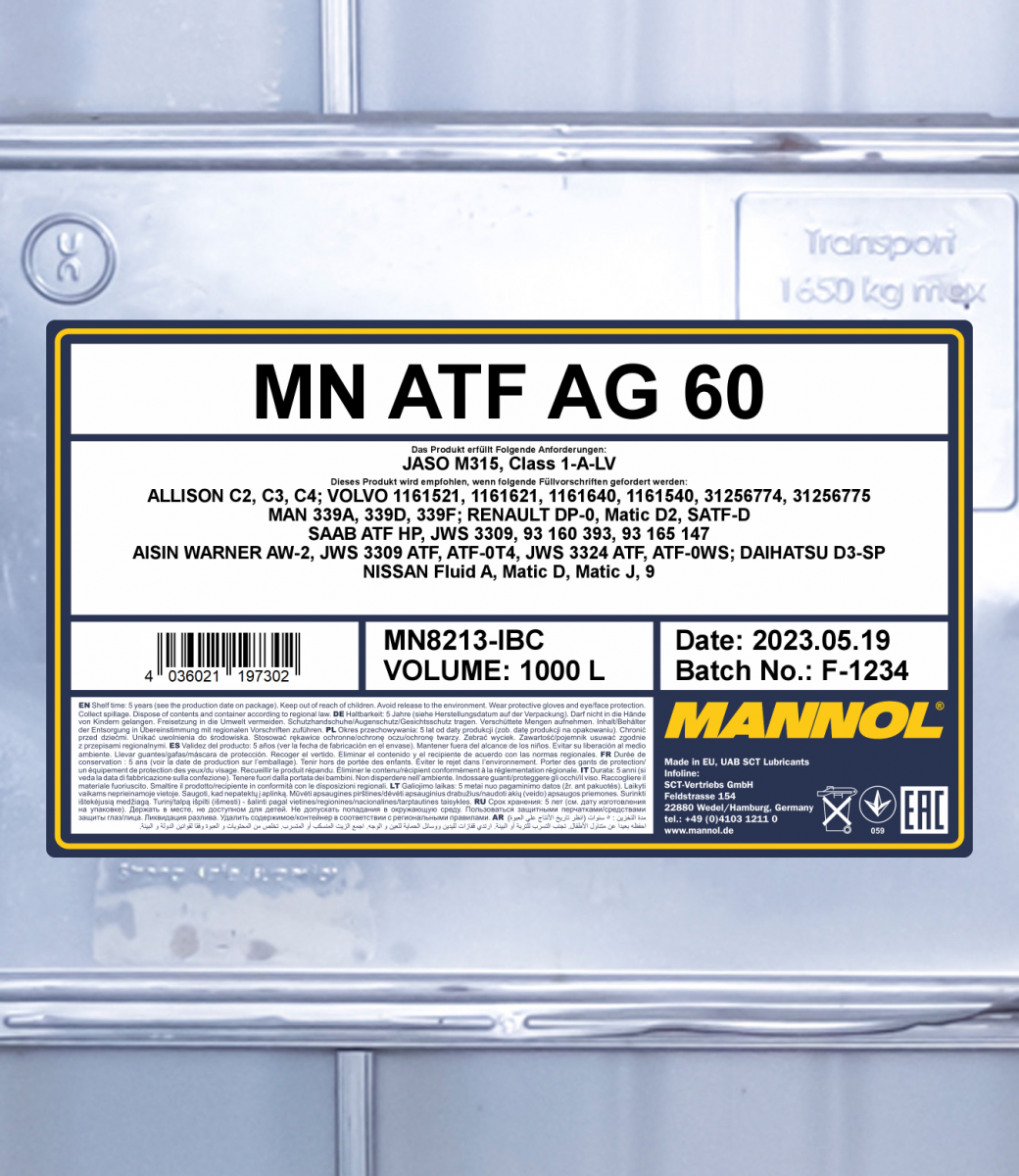 A special all-season synthetic transmission fluid (ATF) for modern 8-speed automatic gearboxes of all types and 6-speed automatic gearboxes of the ZF Group. It ensures a flawless operation of an automatic gearbox, guarantees minimal wear, a lasting service life of transmissions and fuel economy even under extreme loads. It was developed taking into account special requirements set by the VW Group.