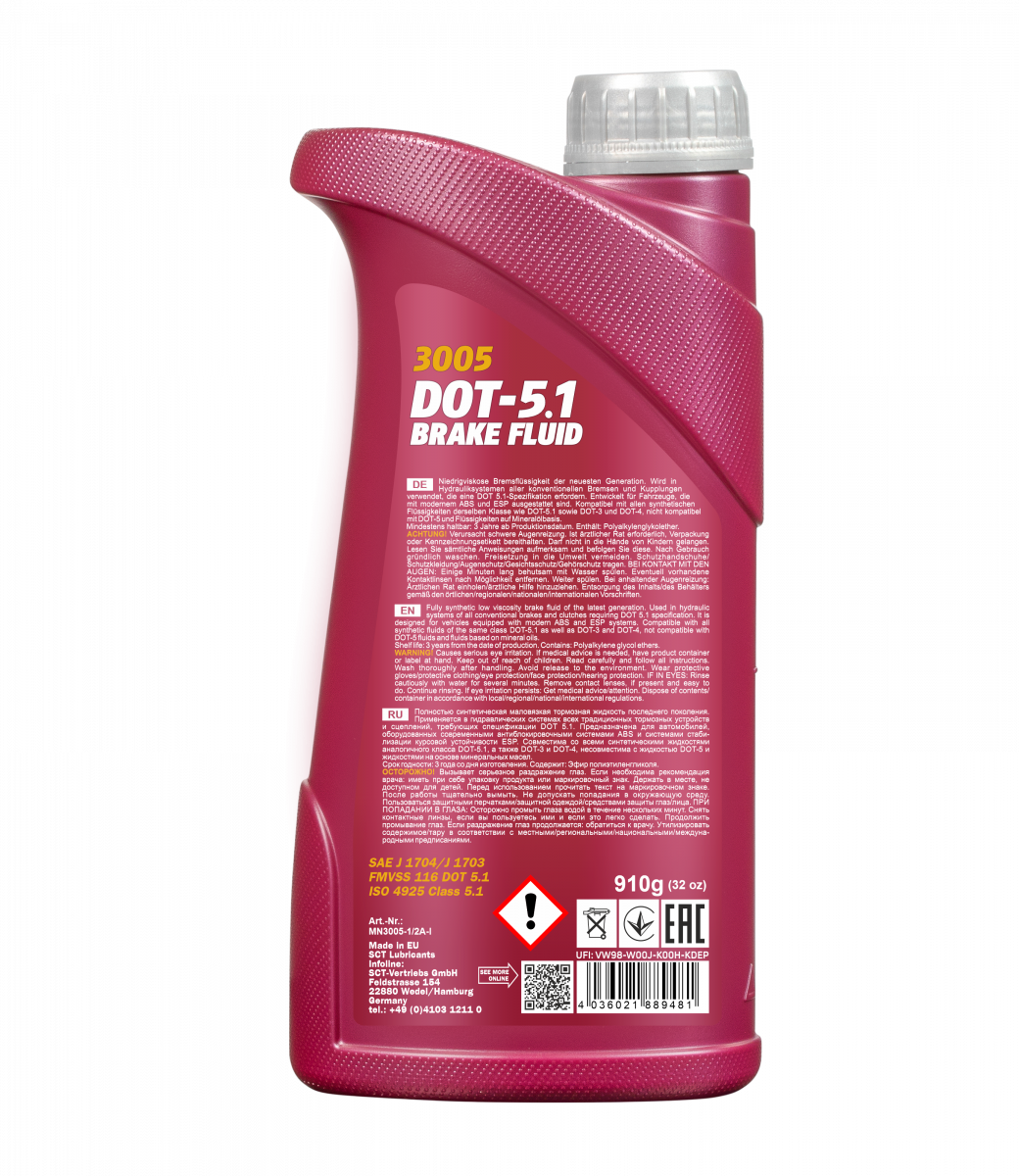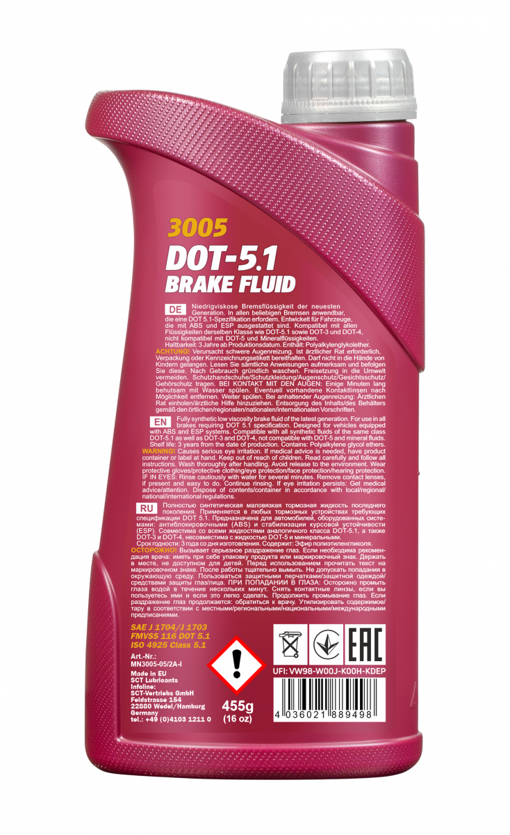 Fully synthetic low-viscosity brake fluid of the latest generation. It is used in the hydraulic systems of all traditional braking devices and clutches that require the DOT 5.1 specification. It is designed for vehicles equipped with modern ABS anti-lock systems and ESP stability control systems.